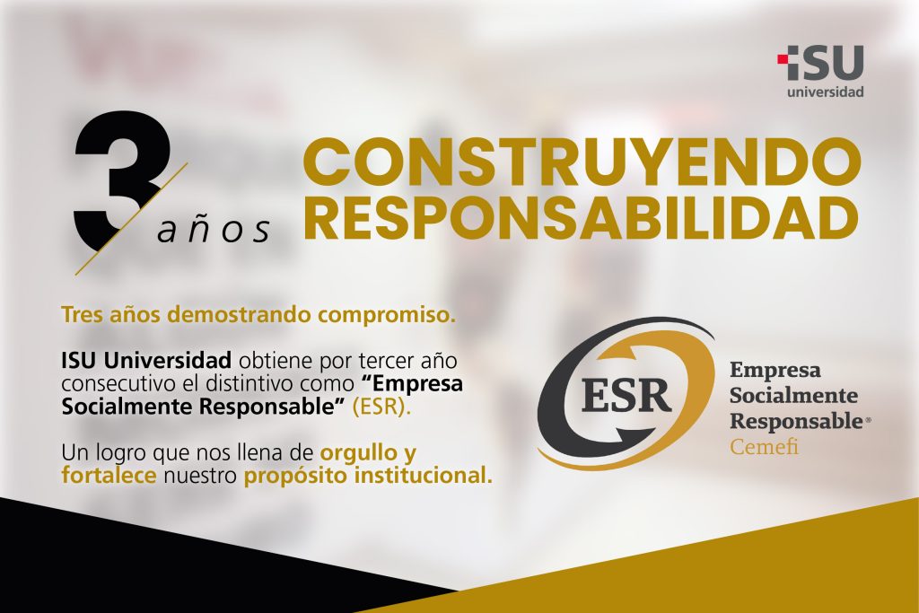 El compromiso social no se improvisa. Se construye día a día.El pasado 24 de febrero de 2026, ISU Universidad recibió la notificación oficial de la reafirmación del Distintivo ESR® (Empresa Socialmente Responsable), otorgado por el Centro Mexicano para la Filantropía (Cemefi).Con este logro, la institución consolida por tercer año consecutivo su compromiso con una gestión […]