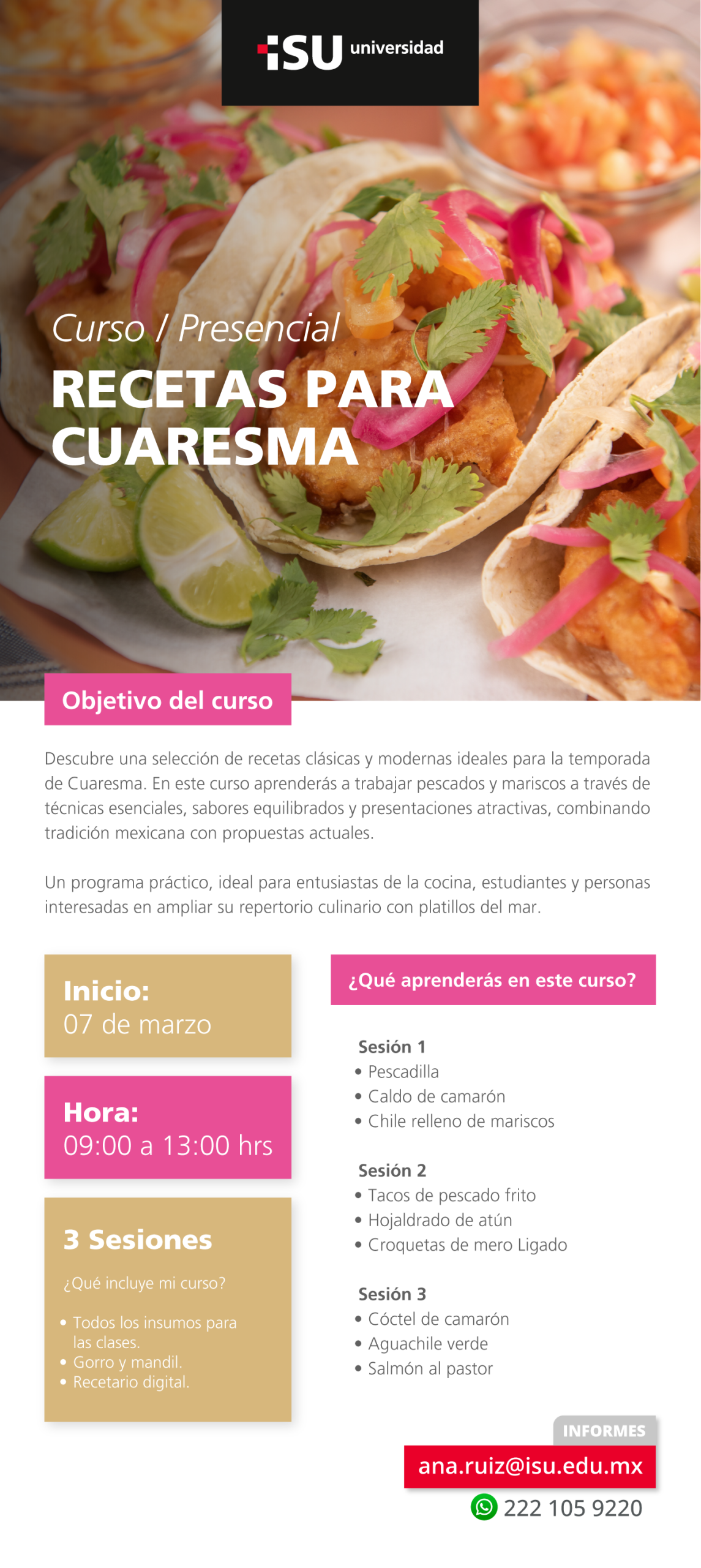 9.- ¿Necesito llevar algún tipo de utensilio? No, en ISU Universidad te facilitamos todo para que tengas la mejor experiencia de aprendizaje.