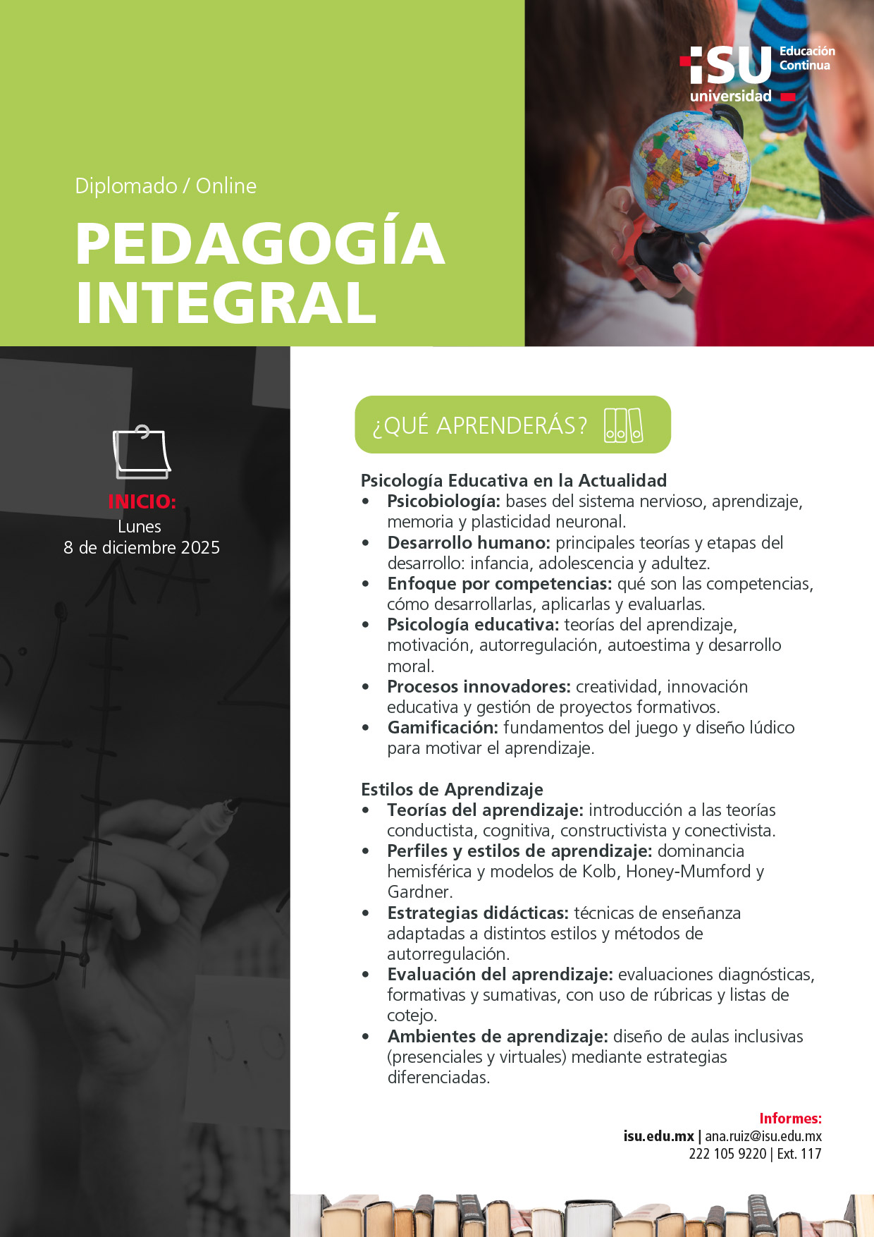 Domina las bases psicológicas del aprendizaje y adquiere estrategias prácticas para diseñar experiencias formativas efectivas. Conviértete en un especialista en pedagogía integral capaz de transformar la manera en que las personas aprenden.