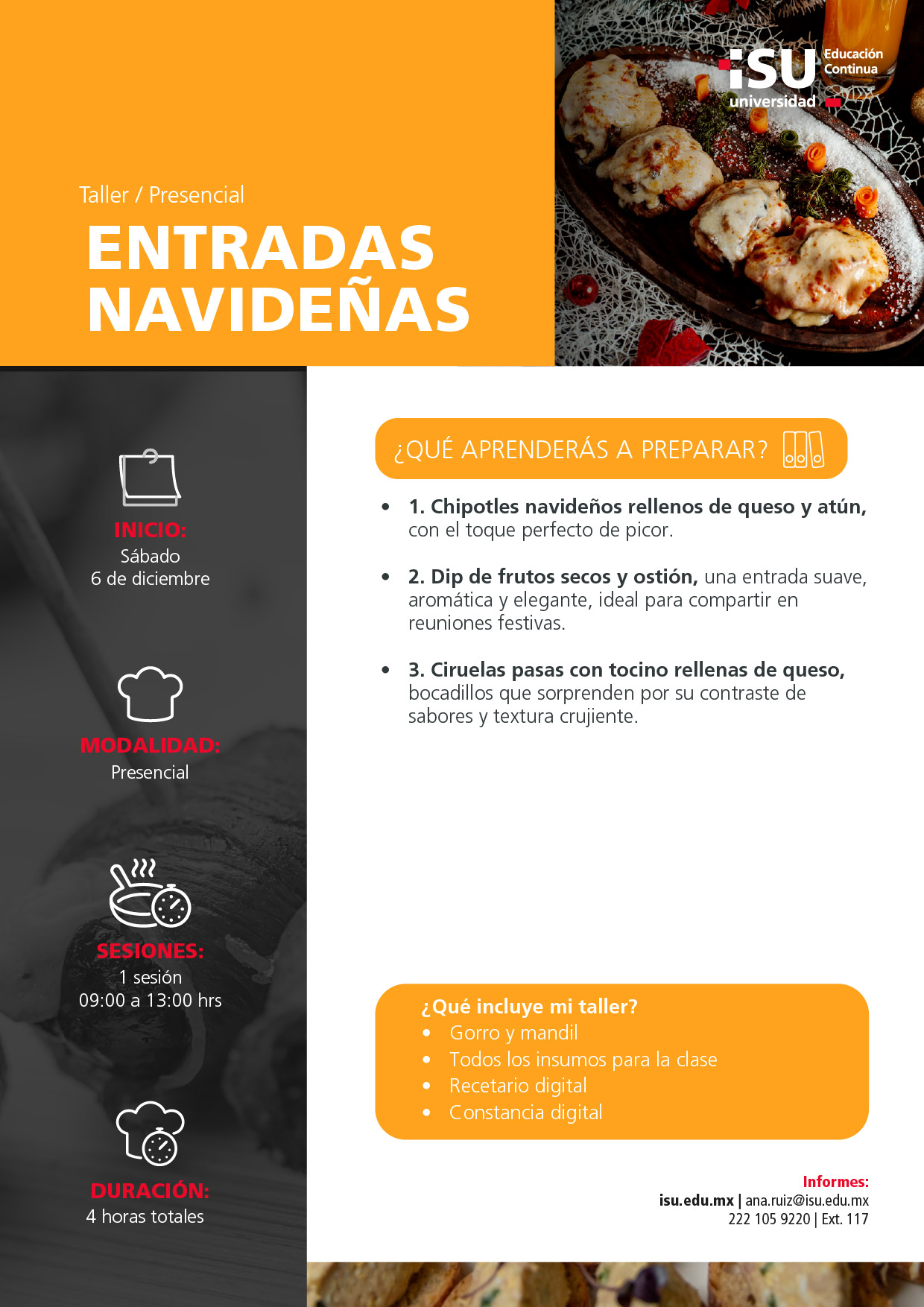 Aprende a crear entradas llenas de encanto y espíritu festivo para comenzar tus celebraciones con el mejor sabor, descubre cómo combinar texturas, aromas y presentaciones que sorprenderán a tus invitados desde el primer bocado. Una experiencia gastronómica perfecta para inspirarte, compartir y disfrutar la magia de la temporada.